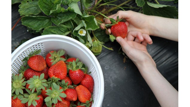 Du skal selv medbringe emballage – alternativ kan du købe jordbærbakker eller spande ved gårdbutikken.