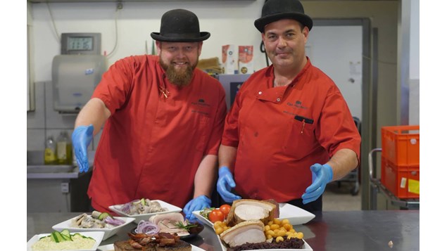 Foto: Privat // Egå Slagteren kunne for nylig servicere de ansatte ved Aarhus Universitetshospital med lækre flæskestegsburgere til deres personalefest.