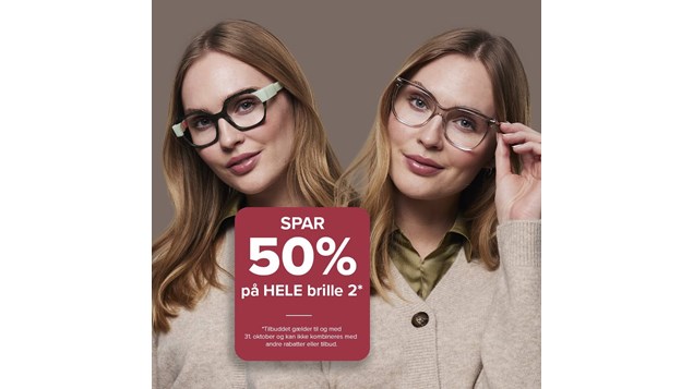Lige nu får du 50% på hele brille 2, når du køber en brille med ZEISS-glas