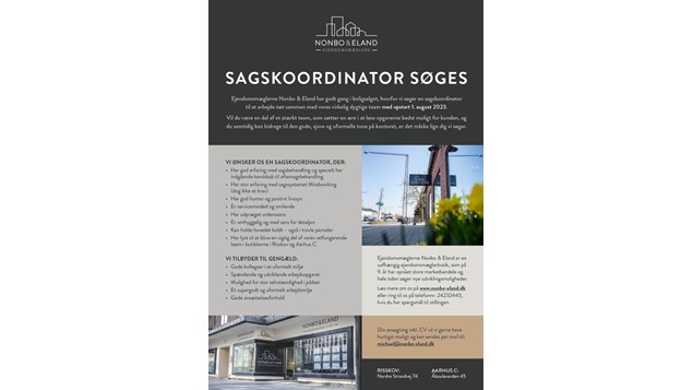 SAGSKOORDINATOR SØGES! Vi har hos Ejendomsmæglerne Nonbo & Eland godt gang i boligsalget, hvorfor vi søger en sagskoordinator med opstart 1. august 2023 til at arbejde tæt sammen med vores dygtige t...